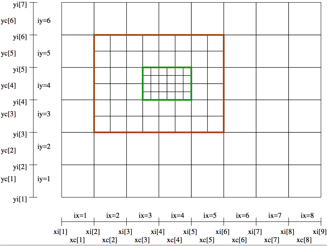 Fig. 26 Example of a 2-D base grid with nx=4 and ny=3, with two nested